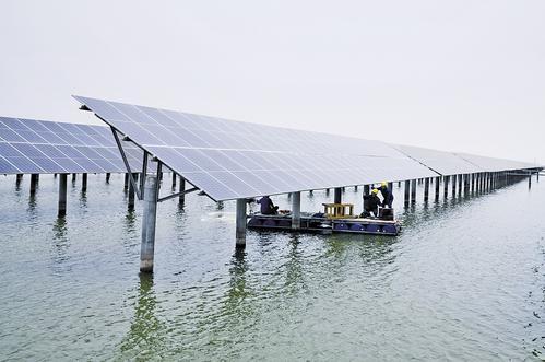 近日,工人在沧州市渤海新区黄骅市南排河镇一处“渔光互补”光伏发电场检查输电设备。近年来,沧州市加快清洁能源开发利用,依托沿海滩涂、水产品养殖场、盐场等资源,发展“渔光互补”、风电等清洁能源项目。据国网沧州市供电公司介绍,目前该市风电、光伏发电和生物质发电等清洁能源装机容量达722万千瓦。 新华社记者 杨世尧摄
