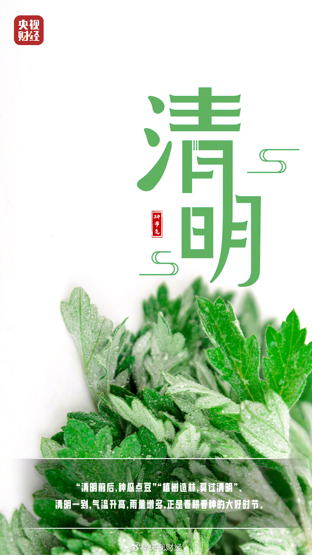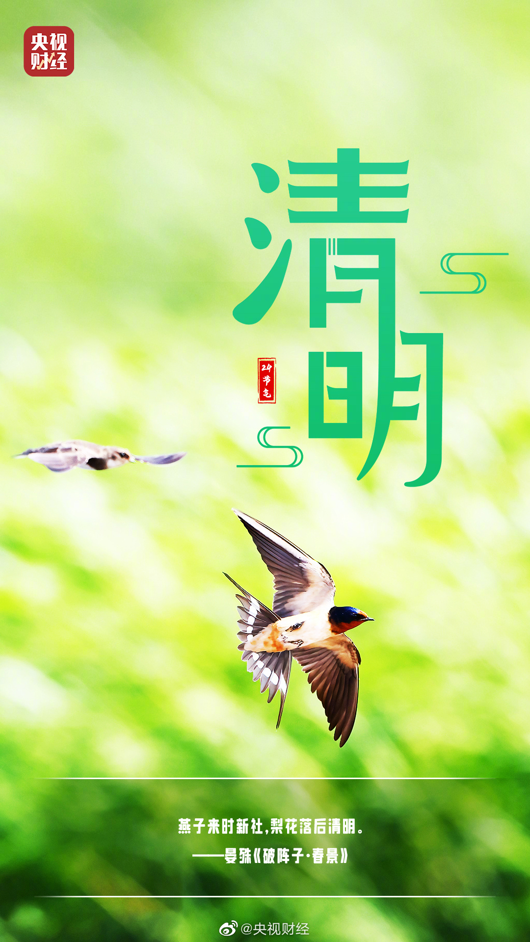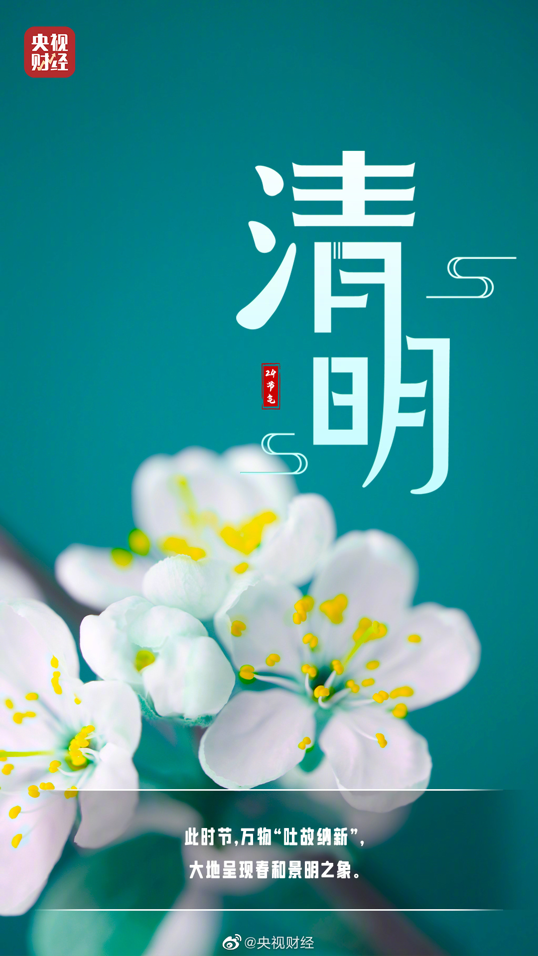 【[微风]#今日清明#,万物生长此时,皆清洁而明净】清明是二十四节气中的第五个节气。此时节,万物“吐故纳新”,大地呈现春和景明之象。“燕子来时新社,梨花落后清明”。#清明节#前后,人们会祭祖、扫墓,北方部分地区会吃馓子、糕饼等,江南一带会吃青团。提醒:出行做好防护,祭扫注意防火!