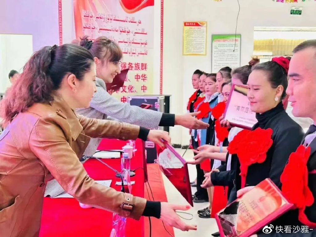 仪式上,政府副县长阿孜古丽·阿不来提、妇女联合会相关负责人、古勒巴格镇分管领导为99名获得自治区级“美丽庭院”示范户代表授予奖牌并发放家庭清洁包,激励她们充分发扬示范带动作用,大力宣扬健康、文明、卫生的行为习惯,传播好经验、好做法,带动身边人讲文明、讲卫生、讲环保,掀起共建美丽乡村热潮。