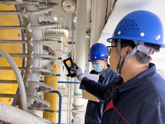 呼和浩特市城市燃气热力集团有限公司工作人员在对锅炉进行巡检维护工作。新华社发