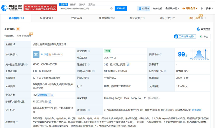该公司成立于2013年7月,经营范围包括发电业务、输电业务、供电业务等,由华能国际(600011)全资持股。
