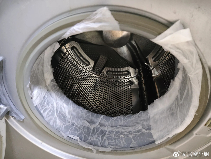 想要快速给洗衣机胶圈除霉,没必要花钱去买除霉啫喱,只需要一瓶84消毒液就搞定了。在胶圈的一周铺上二次洗脸巾或者是湿巾,然后用84消毒液浸湿。