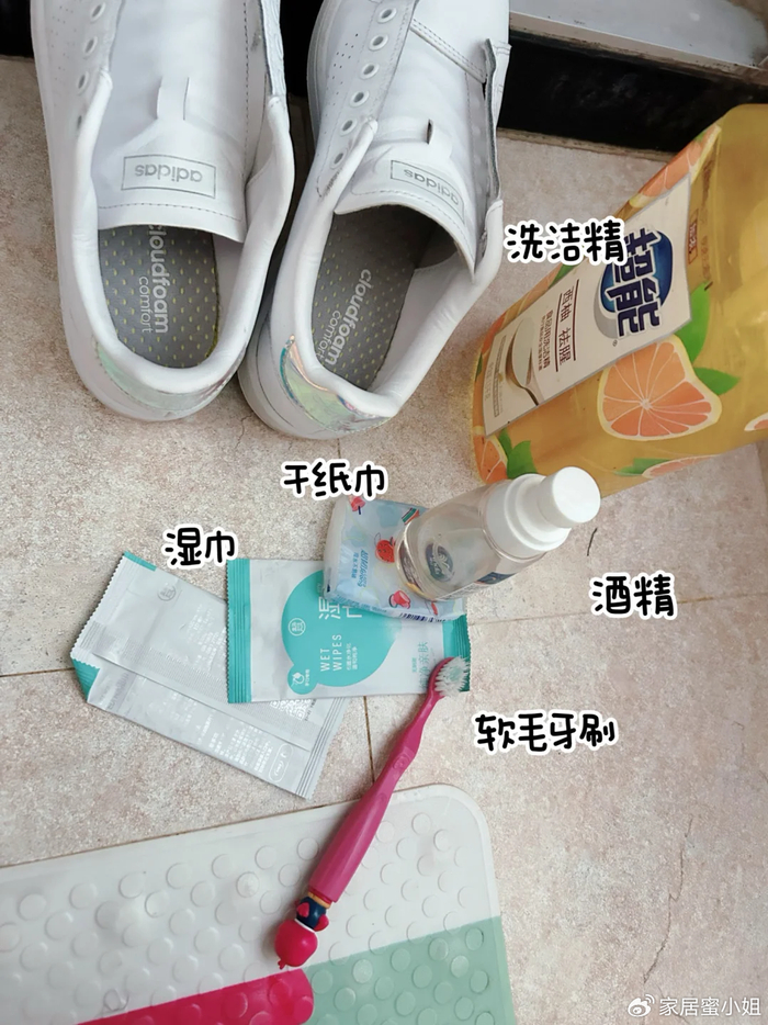 ①清洁小白鞋:如果你的小白鞋脏了,千万别花个几十块钱买啥小白鞋清洁剂了。我们拿出洗洁精和牙膏,将它们1:1混合。