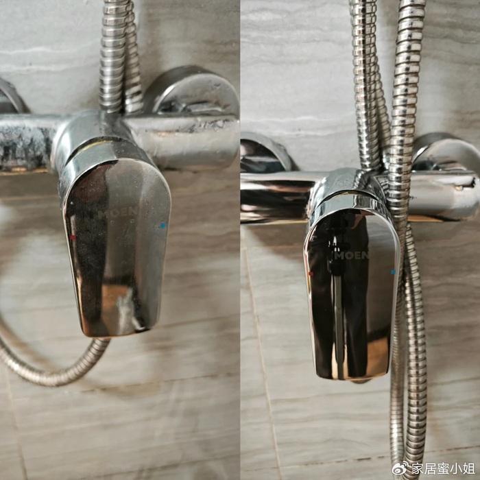 ②除水垢:卫生间花洒的陈年水垢难以清理,花了几十块钱买的水垢清洁剂,实在太刺鼻了,擦的时候还需要戴上手套,口罩,十分麻烦。